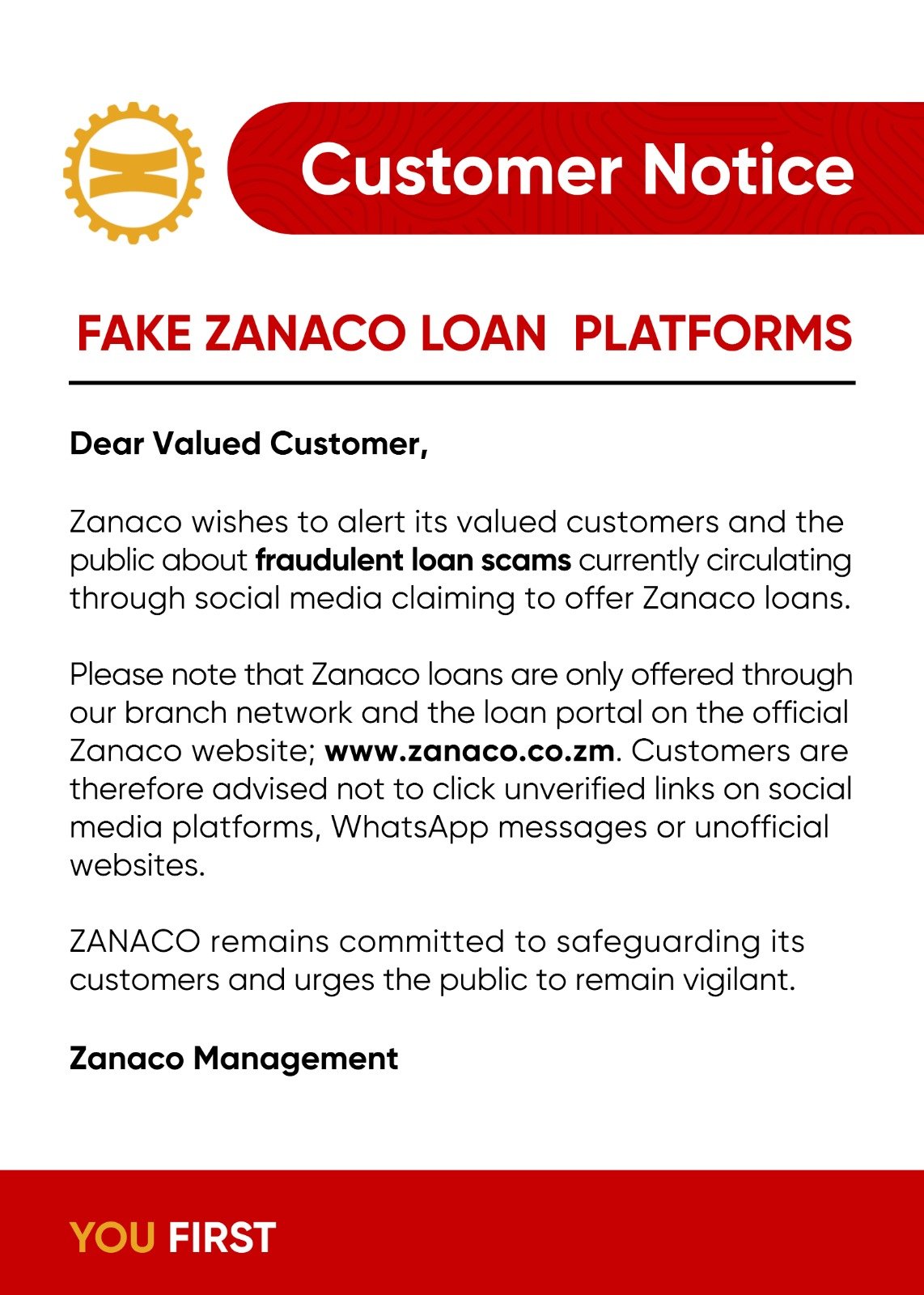 Customer Notice: Fake Zanaco Loan Platforms